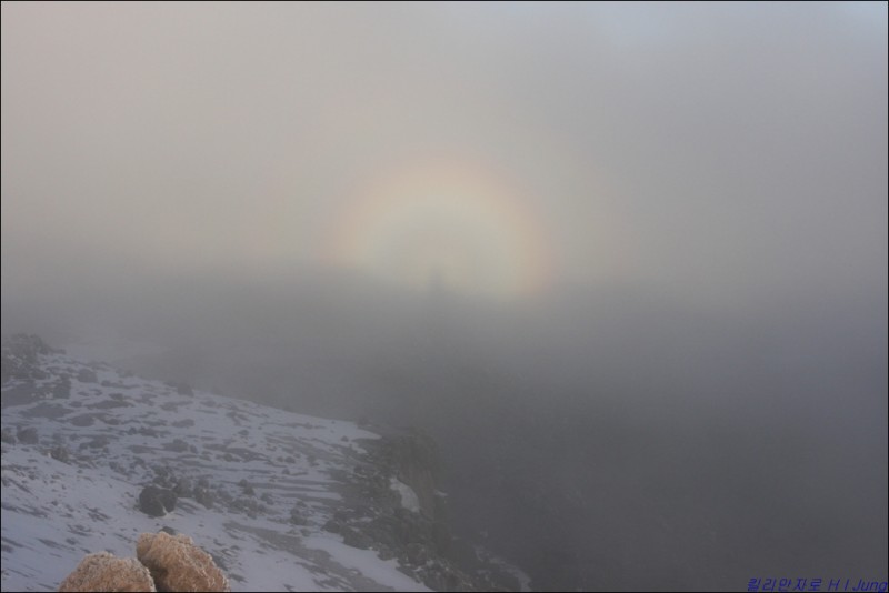 운이 너무도 좋아 키보능선에서 정상으로 가는 길에 브로켄 현상을 만남.