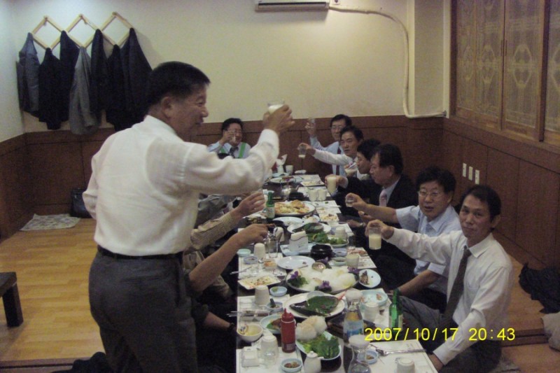 회엔 어울리진 않는 술임에도 10명이 막걸리로 마셨다. 3명만 쐬주를 고수하고...