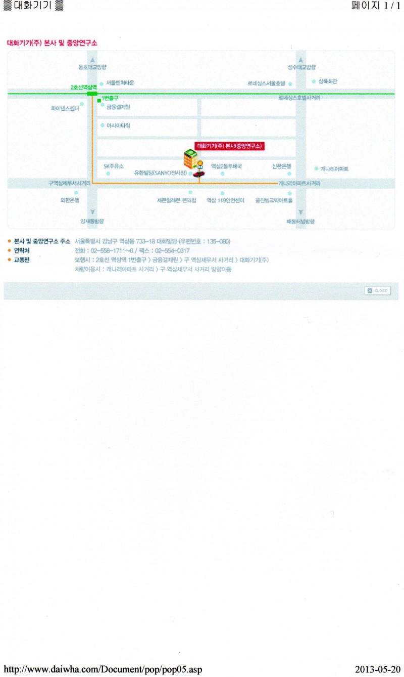2.장소: 대화기기 사무실 (역삼동 소재: 약도 첨부)
