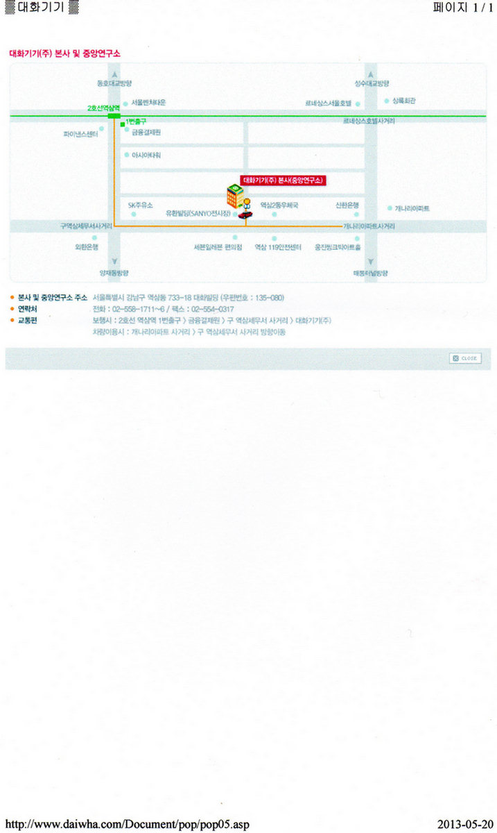 2.장소: 대화기기 사무실 (역삼동 소재: 약도 첨부)