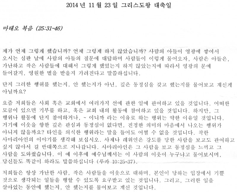 4.복음말씀:마태오 복음 25:31-46(사람의 아들이 자기의 영광스러운 옥좌에 앉아