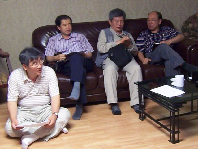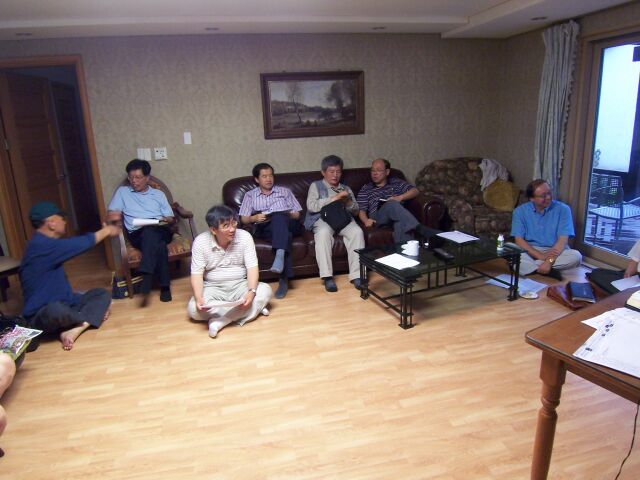 - 예배시작 전에 둘러앉은 모습(임충빈이 윤영진에게 악수 청함)