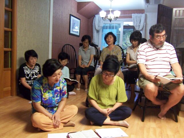 - 예배에서 찬송 부르는 회원들