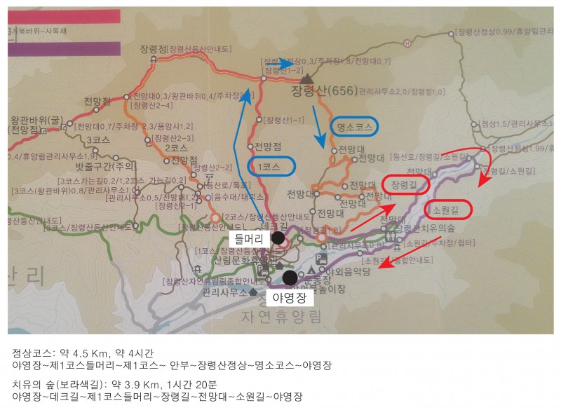 애당초 정상으로 갈 의향이 없었던 나는 ’치유의 숲‘으로 유도하는 발언과 함께, 장령산 정상쪽 가파른 된비알로 슬그머니 겁을 줘 봤다!