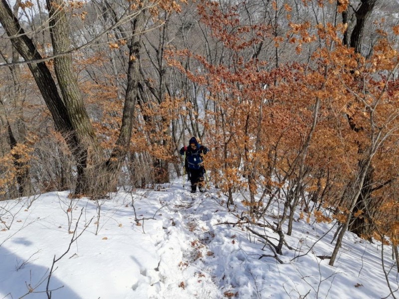 겨울산행답고 정상이 가까워 올수록 눈이 제법 쌓여 있다.