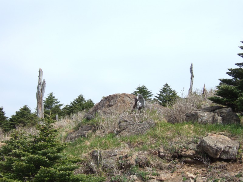 좌우로 고사목도 있고, 구상나무도 보이고, 아래엔 들꽃들...