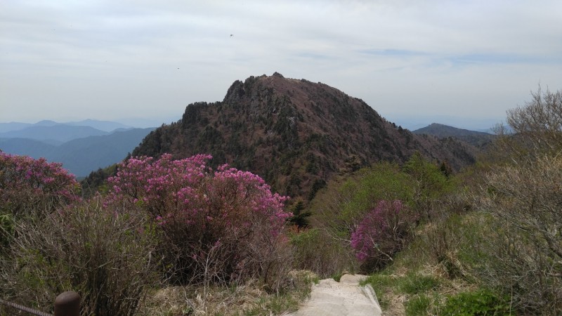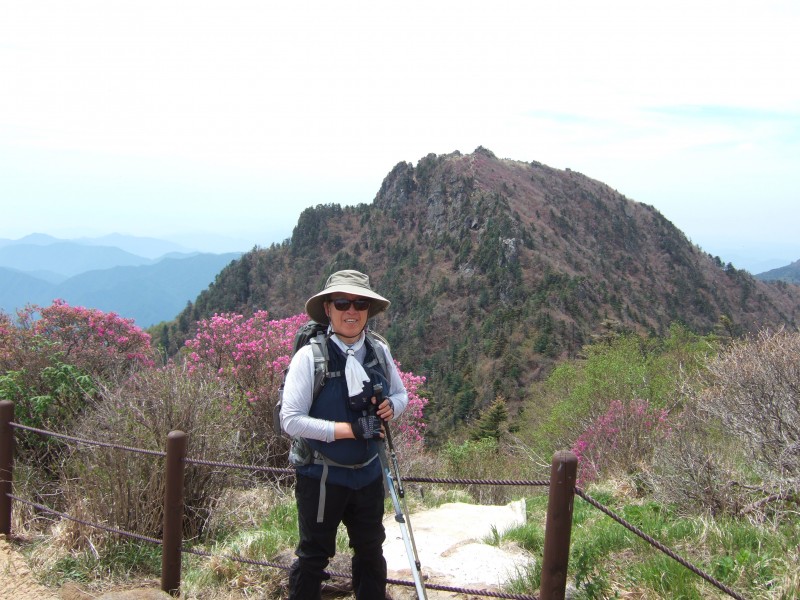 또한, 천왕봉 오르는 거친 산길 양옆에도 암릉과 붉은 진달래의 조화로움에 풍광은 더 빛나고, 통천문 오르는 발길도 그리 힘들지도 않았고, 마지막 깔딱고개에서도 미소가 감돈다!