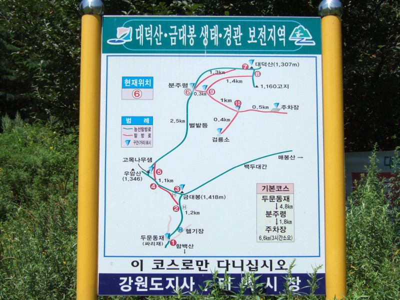 ☞A코스 : 두문동재(싸리재)~금대봉분지~고목나무샘~분주령~검룡소