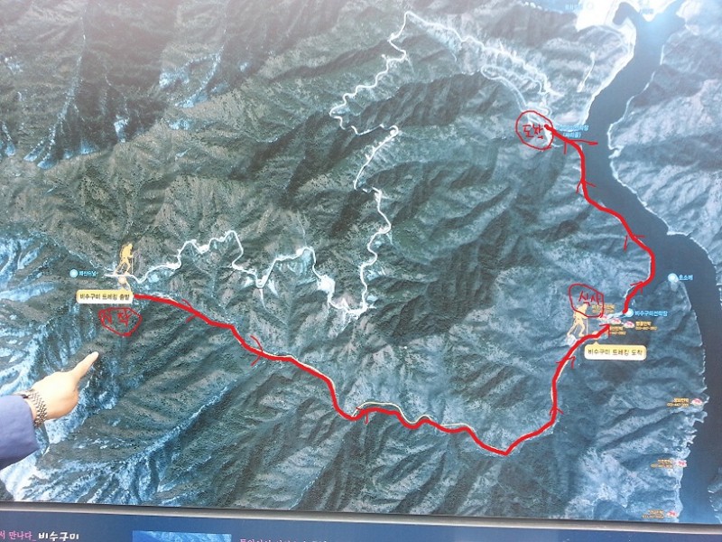 -트래킹코스:1.해산령 터널-비수구미 계곡 길-비수구미 마을-비수구미삼거리 (9km ,3시간 소요)
