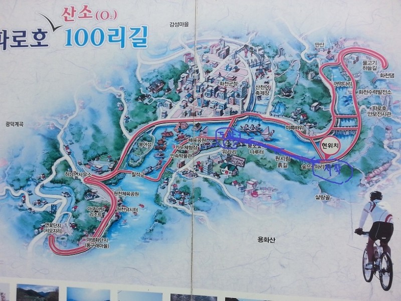 +비수구미 길은 빨간색,화천 산소길은 파란색 길만 걷습니다