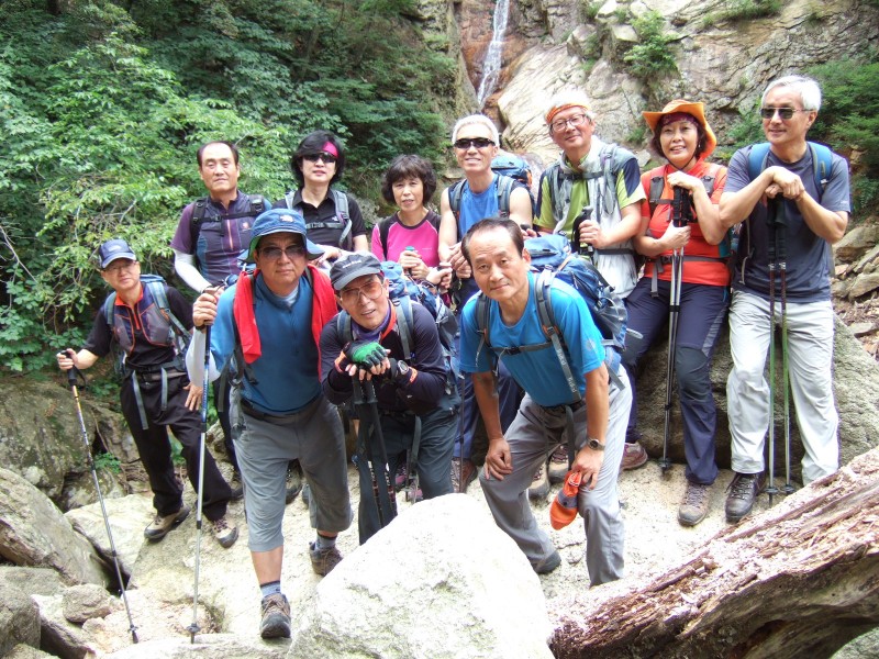 남관악산 육봉 폭포 아래에서 단체 사진을 촬영했구려.