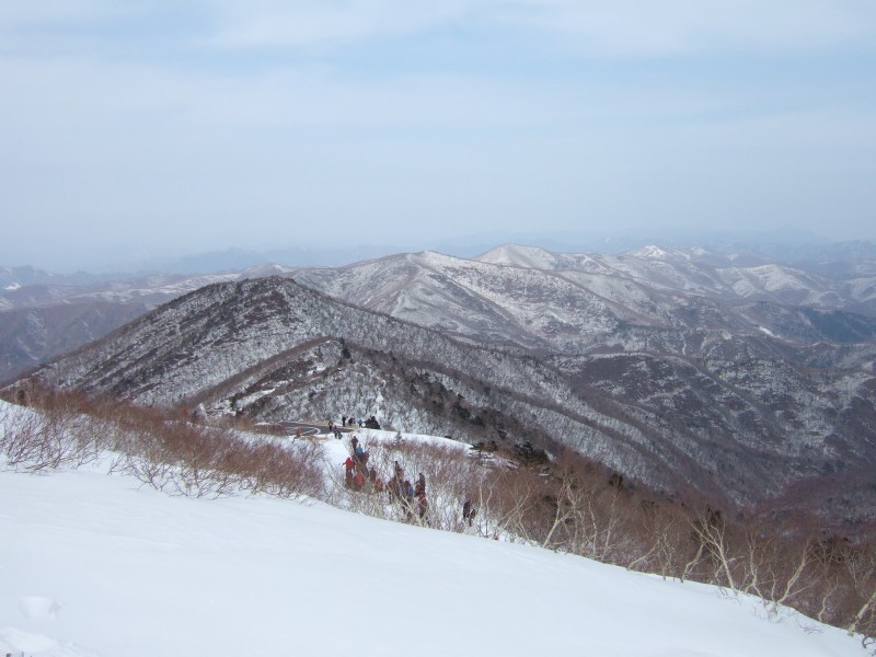 대간종주시절 여기를 새벽에 오를 때 부슬부슬 비가 내렸고 너덜지대라 미끄러웠는데, 오늘은 눈이 너덜을 단단히 다져 놓아 아이젠이 있어 오르기가 그리 어렵지는 않았다.