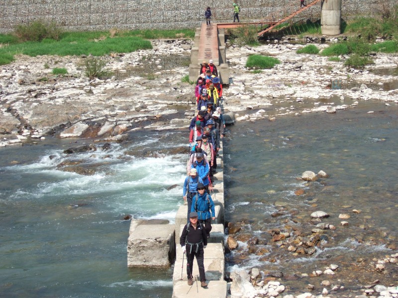 대성사로 올라 가는 코스도 있지만, 가평올레6-1코스는 청평유원지 옆 개울 징검다리를 총총 건너가면 된다.
