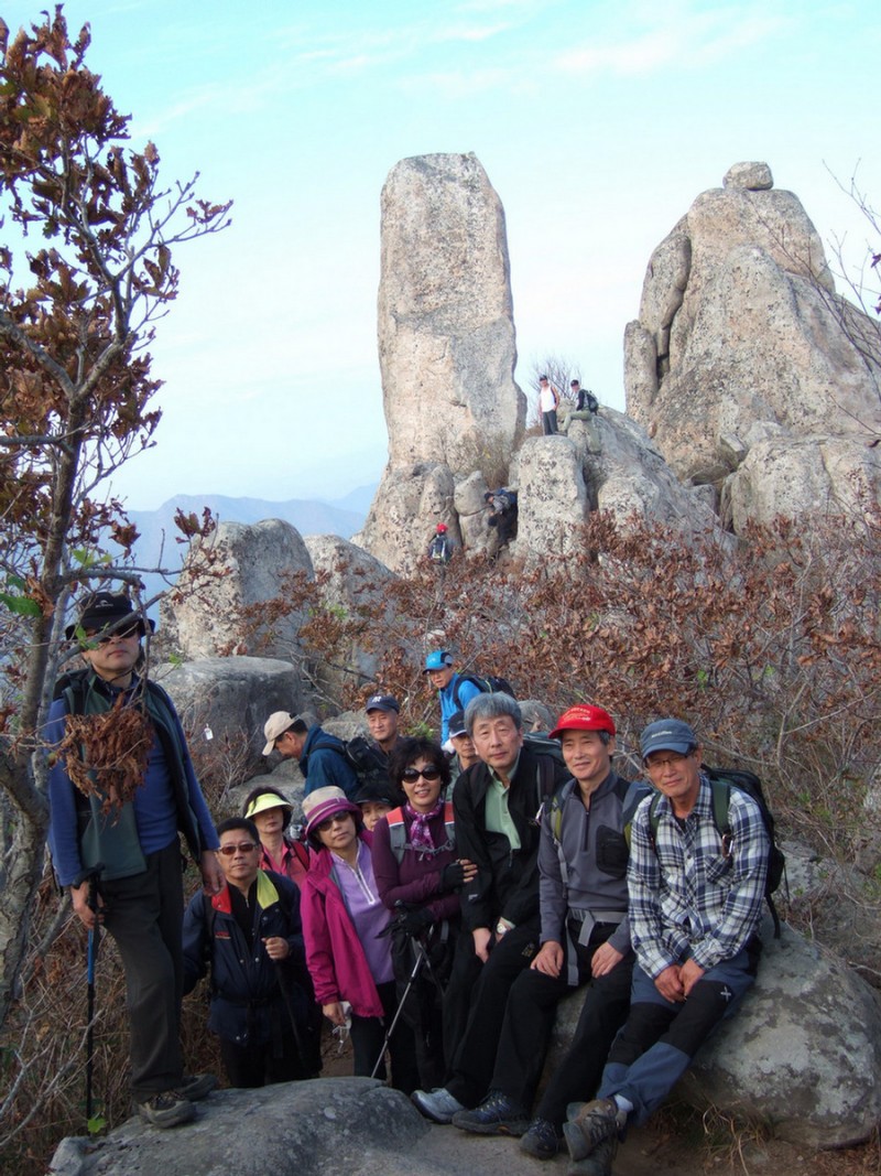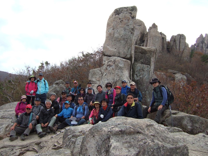 유명한 기암괴석지대를 제외하곤 대부분 널널한 육산이고 그리 가파르지도 않아, 오늘 26명(핵수부부는 저녁에 장흥숙소로 합류) 모두가 함께 산행하기로 했다.