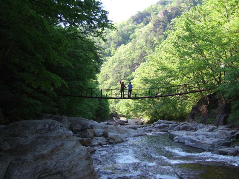 산길은 잘 정비되어 계곡을 군데군데 왔다리 갔다리 출렁다리로 연결하여 예전처럼 위험한 구간은 없었다.