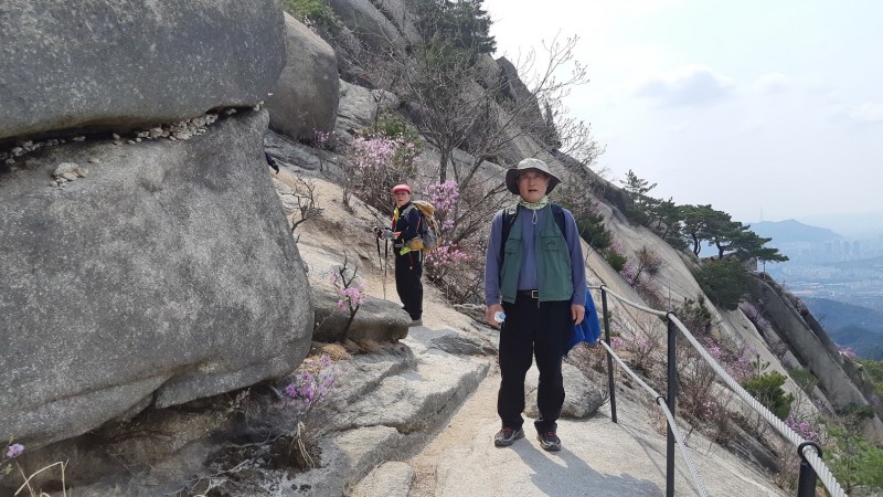 덕릉고개로 내리는 능선길 양옆으로 진달래가 한창이더라! 조~오~터~라!
