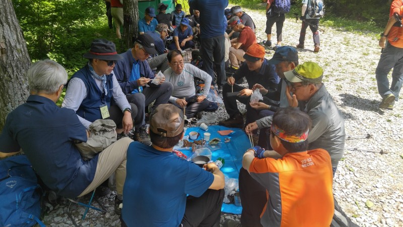 - 7월초 서울고동문산악회(총산)연합산행으로 중앙아시아 키르기스스탄원정대 일원으로서, 미리 야영도 해보고 친목도 도모하고 단련산행을 하자며, 전날 오후에 청옥산자연휴양림제2야영지에서 15명이 텐트를 치고 하룻밤을 보냈다!