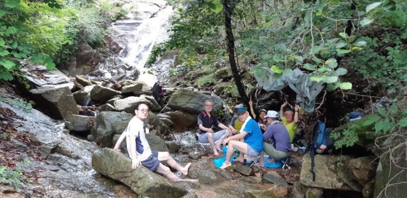 그리하야, 8명의 산싸나이들은 신나게 폭포수 맞으며 맥주와 키르~산 코냑을 맛나게 마시고 먹으며 한나절 자~알 보냈음다!