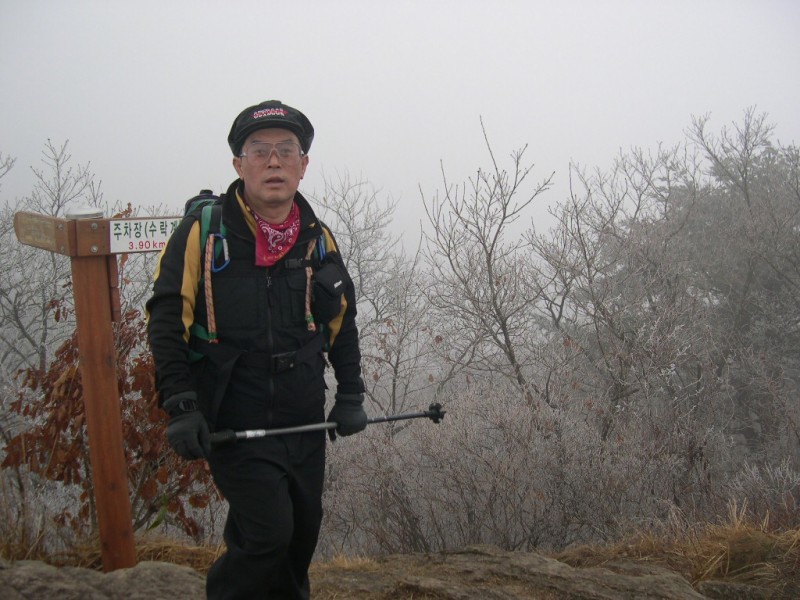 산죽도 드문드문 있고, 오를수록 잔설은 제법 쌓여 있고, 간혹 바람이 불면 나무에서 떨어지는 상고대의 얼음이 우두둑 우박처럼 떨어진다.