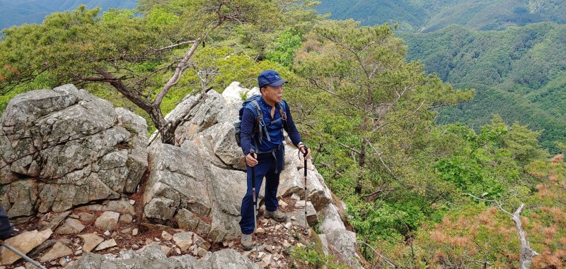 밧줄과 쇠기둥이 있어 찬찬히 오르면 그리 어렵지는 않지만, 도대체 속도를 낼 수 없는 아주 조심스런 산길이었다!