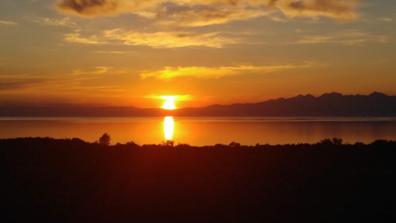 이식쿨 호수에 노을이 지고 붉은 해가 호수물로 풍덩하고도 또 한참이나...