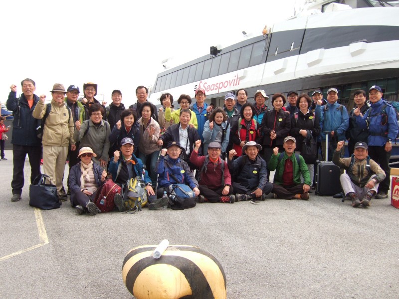 울릉도행 쾌속선 앞에서 기념 촬영 ...