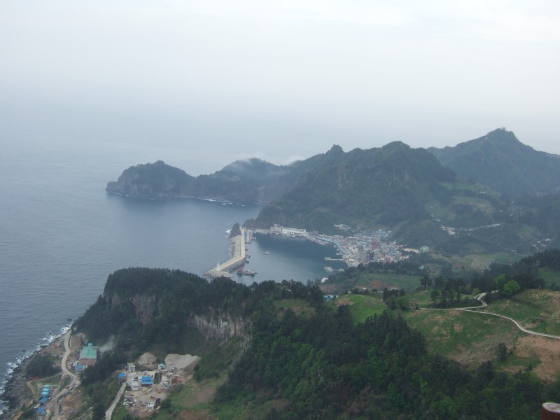 남쪽 저동항의 풍경, 북동쪽의 죽도와 관음도, 서쪽으로 성인봉 일대들 ...