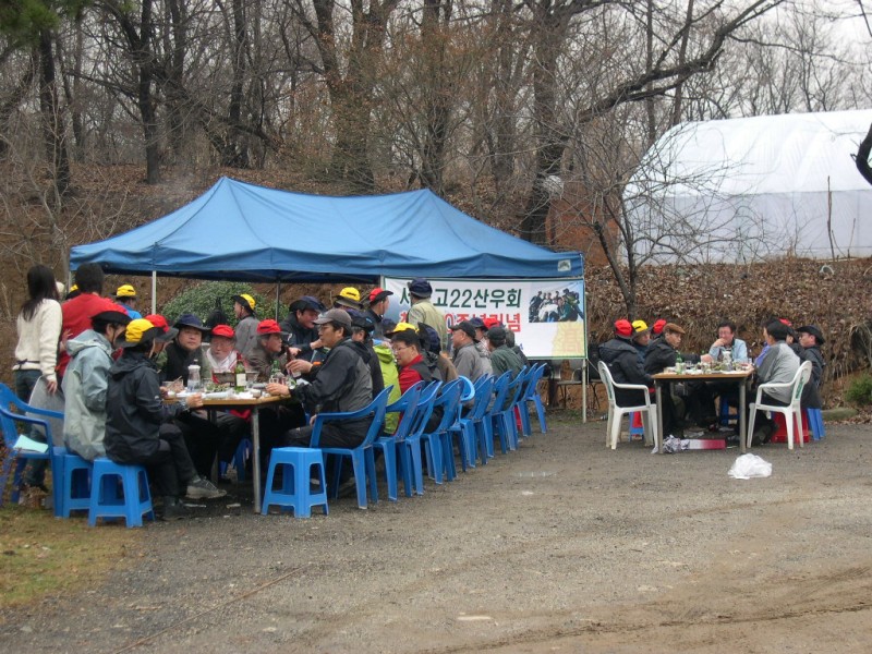 그런데, 서울고동문산악회 선후배님들도 상당수 초청하였으니 이 봄비가 그리 달가와 보이지는 않는다.