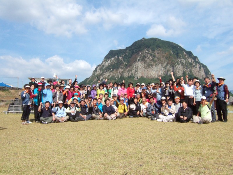 일출봉을 오르내리고 산굼부리입구에서 구호를 외치며 근사한 단체사진을 찍은 것은 또 하나의 추억거리였다.