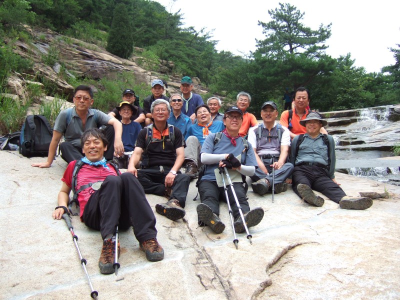 염두대골로 오르다 다시 한번 탁족 ... 암반에서 기념사진 남기고 ...