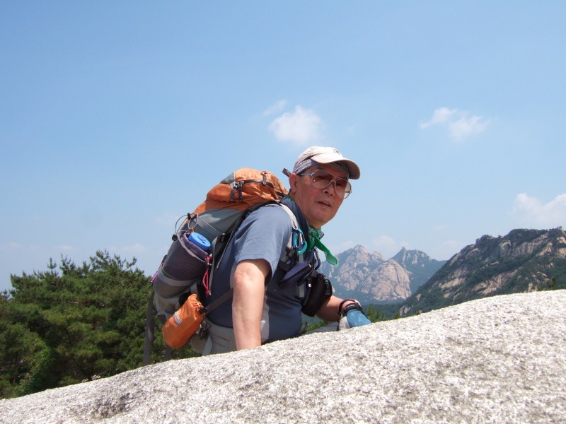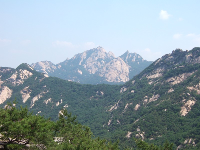 한 바위터에서 바라본 의상능선을 앞배경을 깔고 우뚝 솟은 삼각산(북한산) 위용,