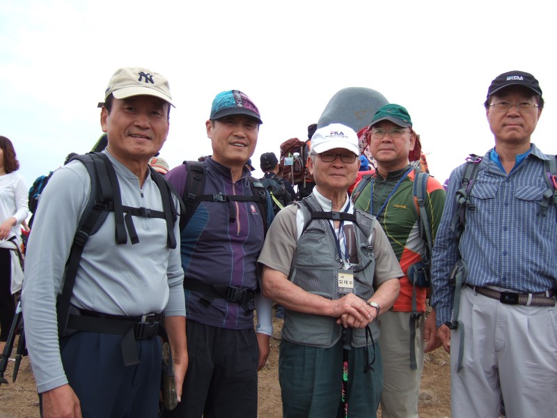그 덕분에 정상 인증 샷~은 생략하고, 바로 주변에서 2회선배님(정태수: 대단한 분이시다. 총산 정기산행에서 정상에는 꼬박 오르시곤 한다)이랑 함께 찰칵하는 것으로 만족한다.