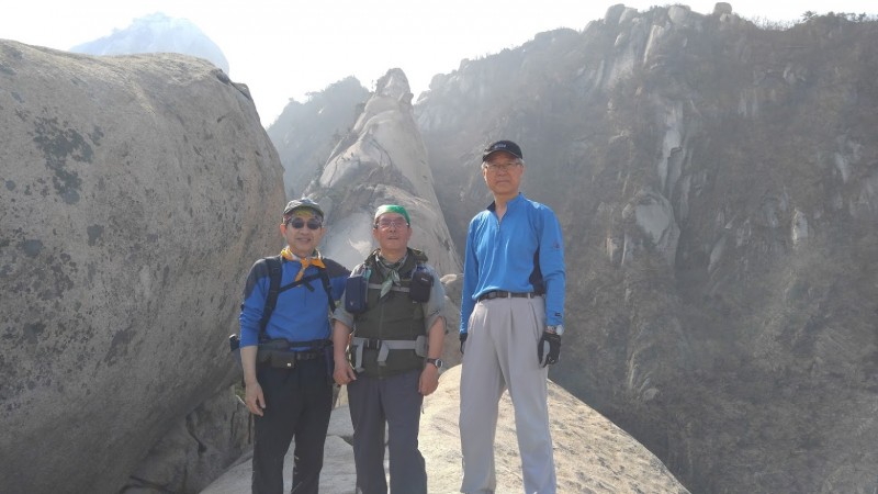 일행들 보다 훨씬 먼저 도착한 17회(김연수,전영도)선배와 나는 너렁너렁 먼저 오르기로 하였다! 17회 선배님들은 숨은벽능선 산행이 처음이시라니, 걱정도 덜겸 나랑 먼저 가자는 제안에 흔쾌히 ... 민폐 끼칠일이 없을꺼라며 안심되는 발걸음이다!