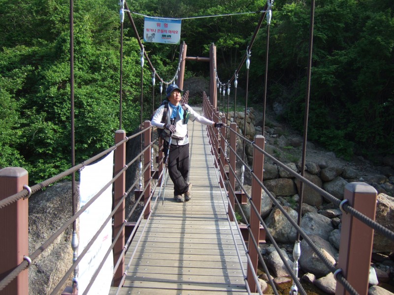 흔들다리를 건너며, 뒤돌아 사진 한 컷 ... 짱~가, 에필로그의 이정표였다!