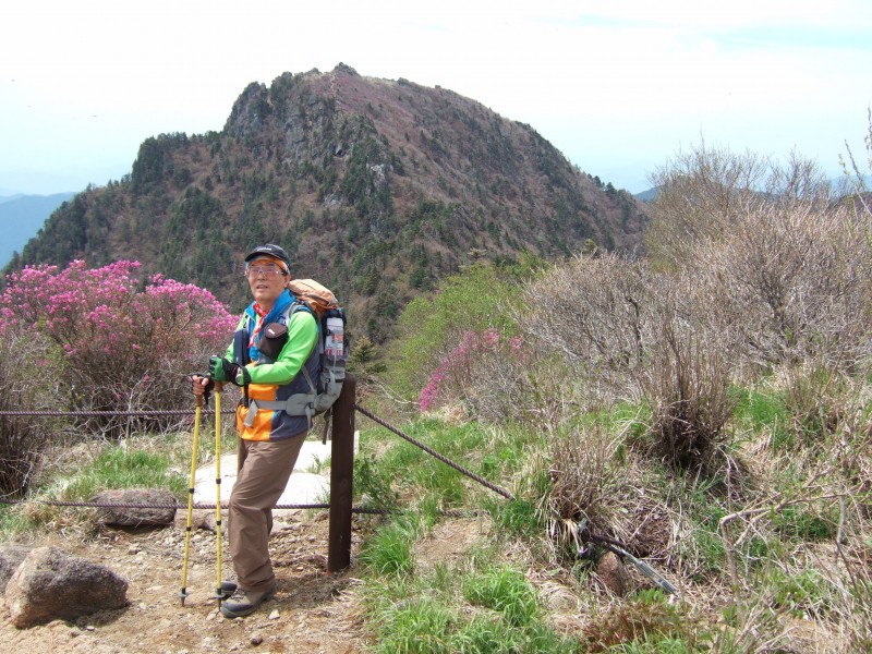 또한, 천왕봉 오르는 거친 산길 양옆에도 암릉과 붉은 진달래의 조화로움에 풍광은 더 빛나고, 통천문 오르는 발길도 그리 힘들지도 않았고, 마지막 깔딱고개에서도 미소가 감돈다!